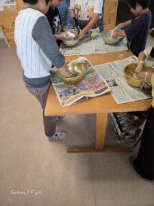 なかなか粉がまとまらなくても、諦めずに最後まで作り上げていました!